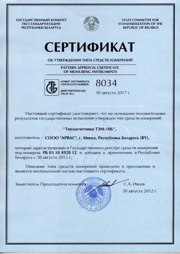| Пределы погрешности измерения: | Класс теплосчетчика по СТБ EN 1434 | |